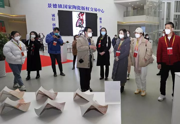 چین، مشرقی صوبہ جیانگ شی کے شہر جینگ ڈی ژن میں 5 ویں عرب فنون میلے میں مہمان سیرامک کے تخلیقی ڈیزائن دیکھ رہے ہیں۔ (شِنہوا)