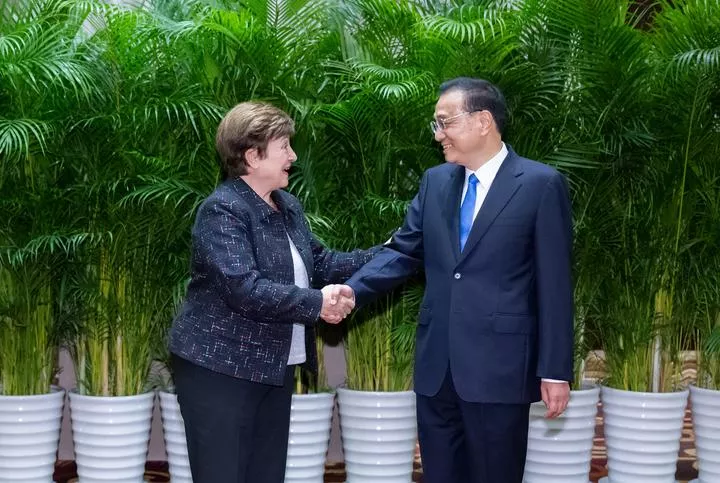 چین، مشرقی صوبہ انہوئی کے ہوانگ شان میں چینی وزیراعظم لی کھ چھیانگ بین الاقوامی ما نیٹری فنڈز کی منیجنگ ڈائریکٹر کرسٹالینا جورجیوا سے ملاقات کررہے ہیں۔ (شِنہوا)