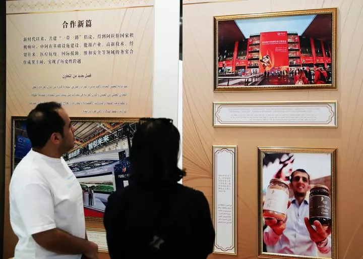 سعودی عرب، ریاض میں لوگ چین اور عرب ممالک کے درمیان دوستانہ تبادلے اور تعاون کی عکاسی کرتی تصویری نمائش دیکھ رہے ہیں ۔ (شِنہوا)