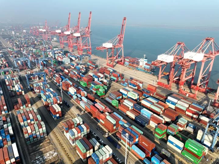 چین کے مشرقی صوبہ جیانگسو میں لیان یون گانگ بندرگاہ کے کنٹینر ٹرمینل کا ایک منظر۔(شِنہوا)