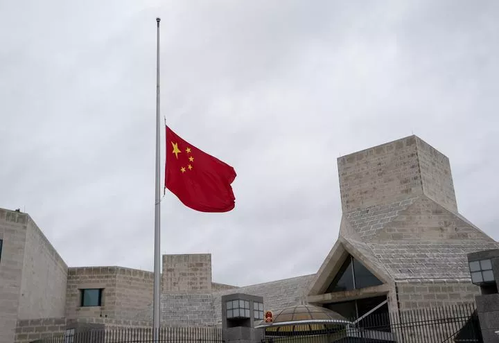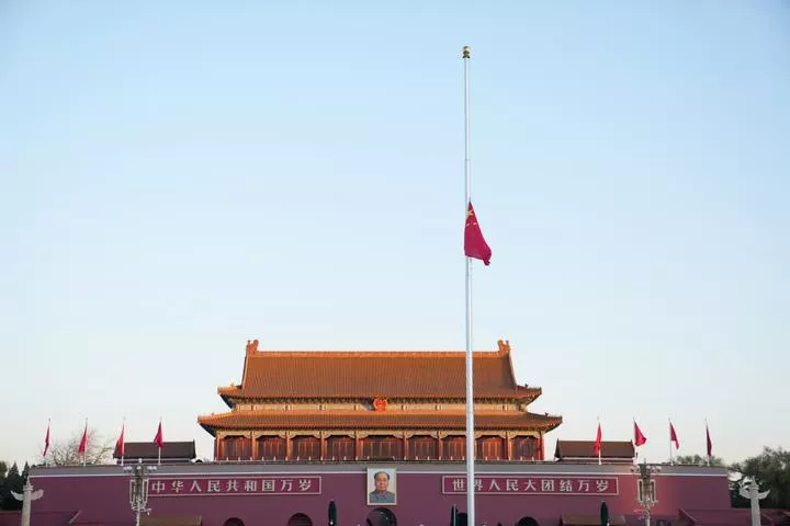 کامریڈ جیانگ ژیمن کے سوگ میں امریکہ میں چینی سفارتخانے پر چین کا قومی پرچم سرنگوں ہے۔(شِنہوا)