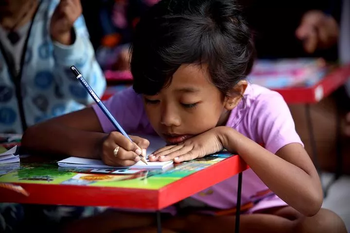 انڈونیشیا ، مغربی جاوا کے سیانجور میں 5.6 شدت زلزلے کے بعد ایک بچی عارضی کلاس میں پڑھ رہی ہے۔(شِنہوا)