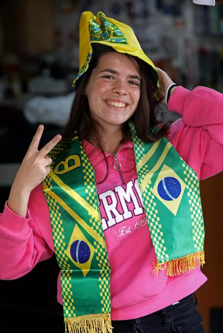 لبنان ، بیروت کی ایک دکان میں ایک خاتون فیفا ورلڈ کپ کی آرائشی اشیاء پہنے تصویر بنوا رہی ہے۔(شِنہوا)