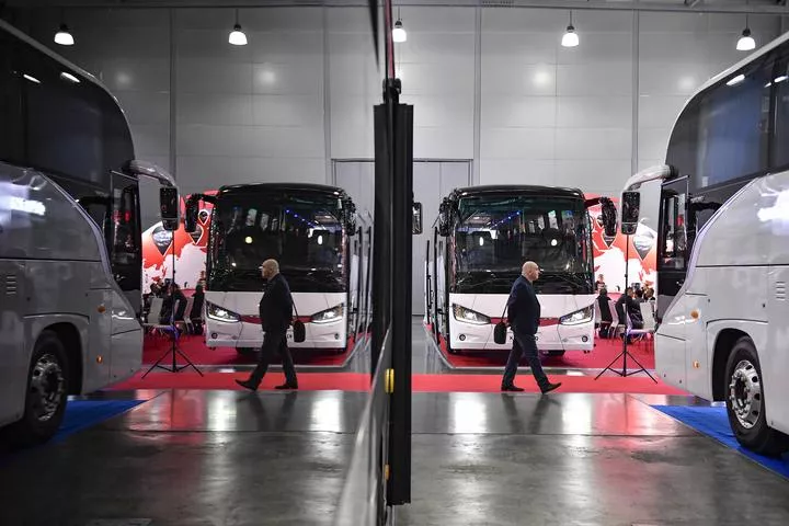 روس کے ماسکو میں لوگ بین الاقوامی بس اینڈ کوچ شو کا دورہ کر رہے ہیں۔(شِنہوا)