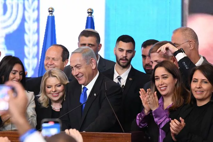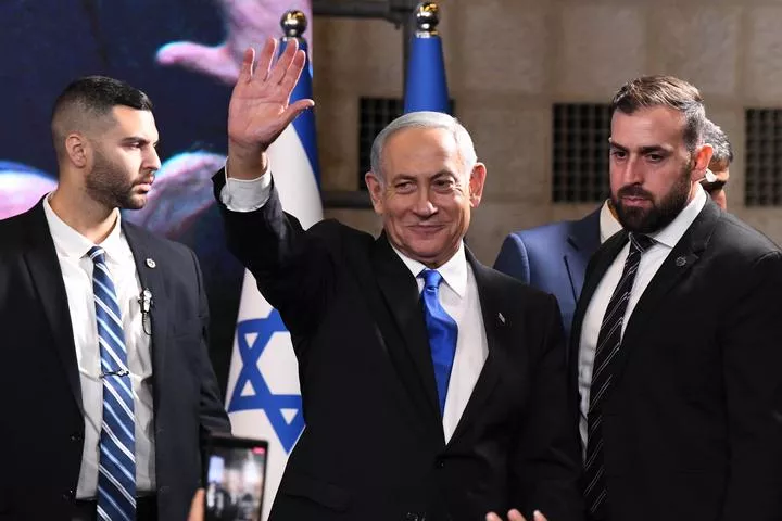 سابق اسرائیلی وزیر اعظم اور لیکود پارٹی کے رہنما بنجمن نیتن یاہو یروشلم میں پارٹی ہیڈکوارٹر میں ہاتھ ہلا رہے ہیں ۔ (شِنہوا)