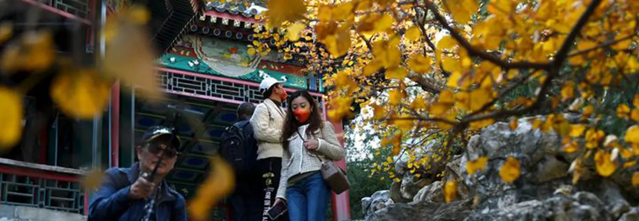 چین ، دارالحکومت بیجنگ کے بے ہائی پارک میں لوگ خزاں کے دلکش نظارے سے لطف اندوز ہورہے ہیں ۔ (شِنہوا)