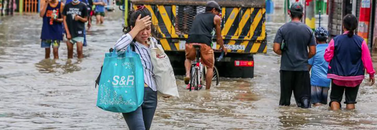 فلپائن، صوبہ کیویٹ میں شدید سمندری طوفان نالگے کی وجہ سے آنے والے سیلاب میں ایک فوجی ٹرک علاقہ مکینوں کو لیکر جارہا ہے۔ (شِںہوا)
