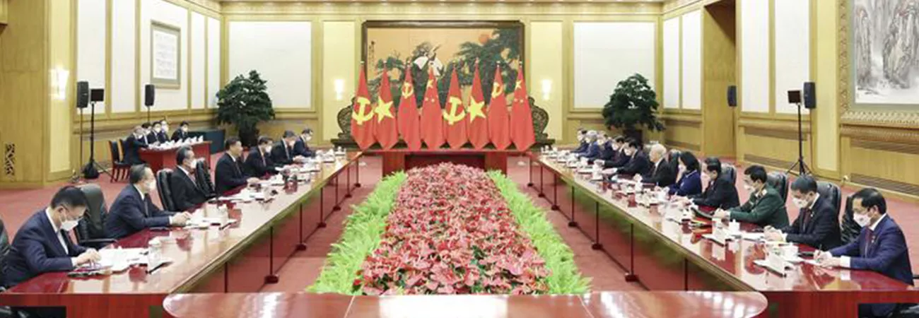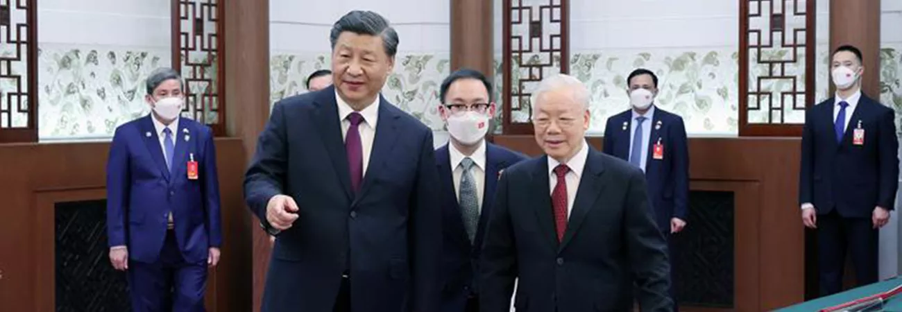چین ، دارالحکومت بیجنگ کے عظیم عوامی ہال میں چین کے صدر اور کمیونسٹ پارٹی آف چائنہ کی مرکزی کمیٹی کے جنرل سیکرٹری شی جن پھنگ اور کمیونسٹ پارٹی آف ویتنام کی مرکزی کمیٹی کے جنرل سیکرٹری نکویان پھو تورنگ ، باہمی تعاون بارے دستخط کردہ دستاویزات دیکھ رہے ہیں۔ (شِنہوا)