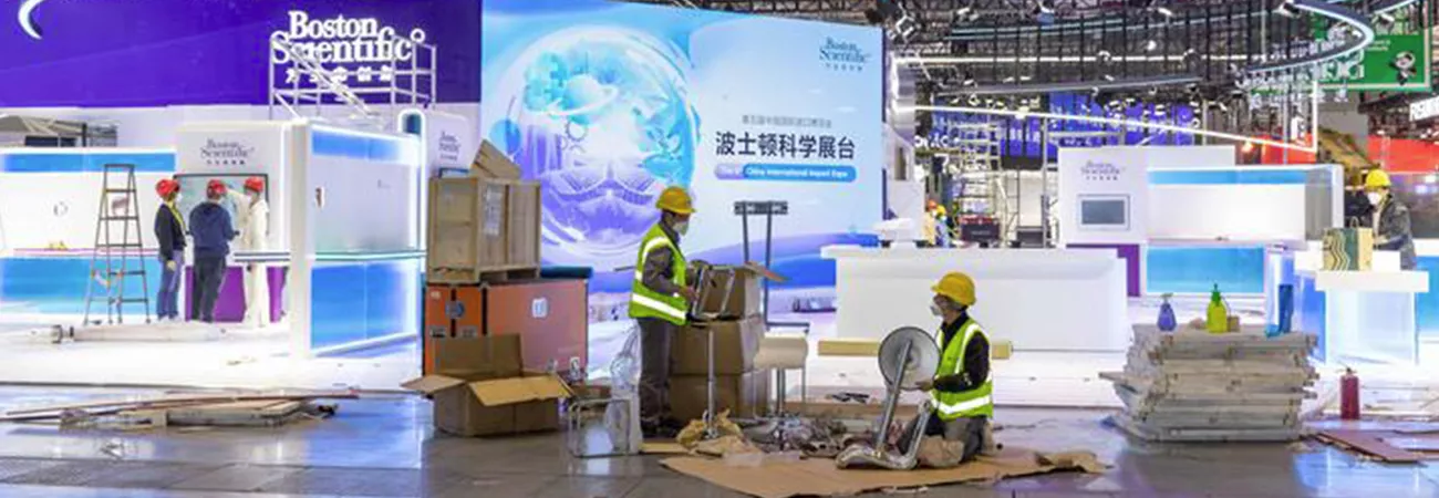 چین ، مشرقی شہر شنگھائی میں 5 ویں چائنہ انٹرنیشنل درآمدی نمائش کی تیاریاں قومی نمائش اور کنونشن مرکز میں جاری ہیں۔ مزدوروں کو ایک نمائشی ہال تیار کرتے دیکھا جاسکتا ہے۔ نمائش 5 سے 10 نومبر تک ہوگی۔ (شِنہوا)