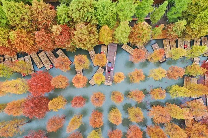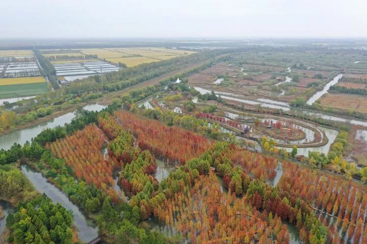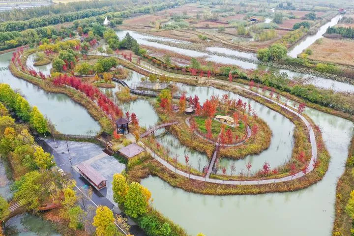 چین ، مشرقی صوبہ جیانگ سو کی کاؤنٹی سی ہونگ میں واقع ہونگ زی جھیل ویٹ لینڈ میں موسم خزاں کا خوبصورت نظارہ ۔ (شِنہوا)