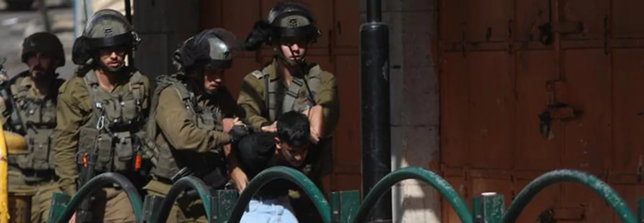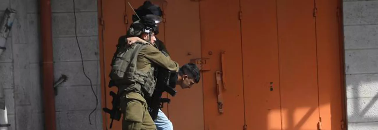 مغربی کنارے کے شہر الخلیل میں تصادم کے دوران اسرائیلی فوجی احتجاج کرنیوالے فلسطینی شہری کو گرفتار کر رہے ہیں۔ (شِنہوا)