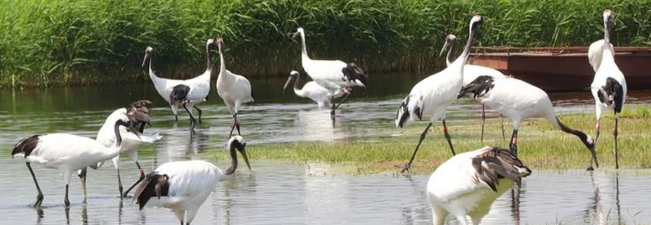 چین، شمال مشرقی صوبہ حئی لونگ جیانگ میں ژالونگ قومی قدرتی افزائش گاہ میں سرخ تاج والے سارس موجود ہیں۔ (شِںہوا)