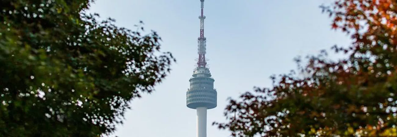 جنوبی کوریا، سیئول میں موسم خزاں کے دوران نمسان پارک میں درختوں کے درمیان نمسان سیؤل ٹاور کا نظارہ۔ (شِنہوا)