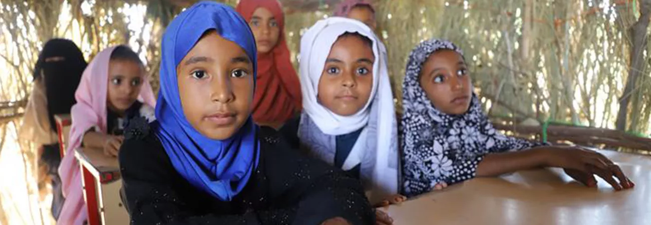 یمن کے شمال مغربی صوبے حجہ میں طالبات عارضی کمرہ جماعت کے اندر موجود ہیں۔(شِنہوا)