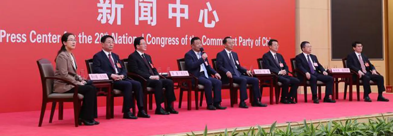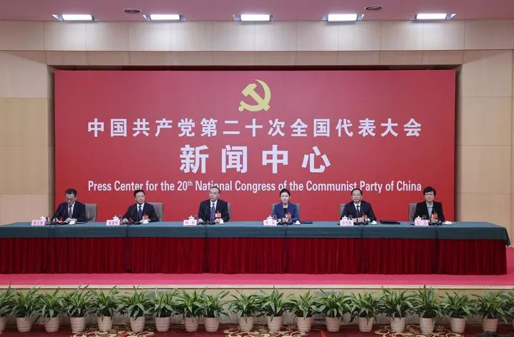 کمیونسٹ پارٹی آف چائنہ (سی پی سی ) کی 20ویں قومی کانگریس کے شان ڈونگ، ہینان، ہوبے ، ہونان، گوانگ ڈونگ، گوانگشی اور ہائی نان کے وفود کے ترجمان بیجنگ میں گروپ انٹرویو کے دوران صحافیوں سے مخاطب ہیں۔(شِنہوا)