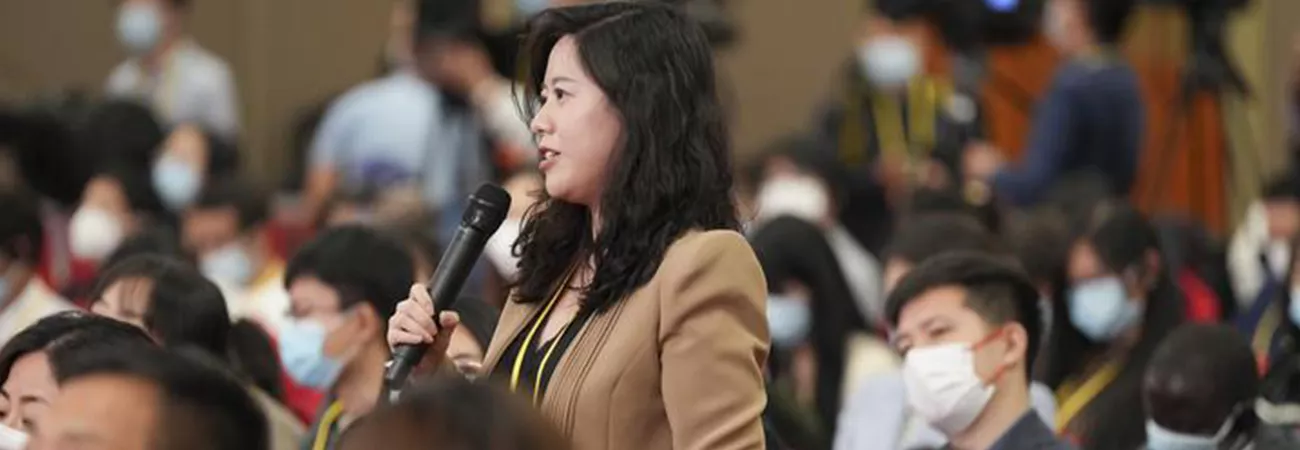 چین، دارالحکومت بیجنگ میں بذریعہ ویڈیو لنک منعقدہ پریس کانفرنس میں ایک خاتون صحافی سوال کررہی ہے۔(شِںہوا)