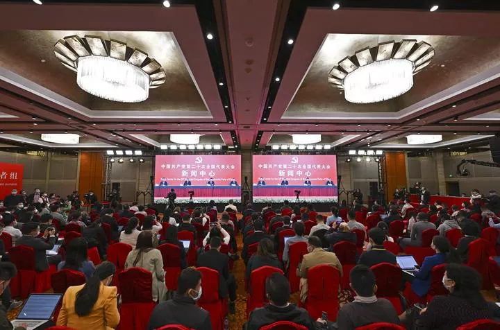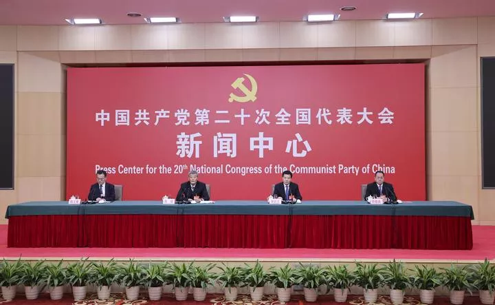 کمیونسٹ پارٹی آف چائنہ (سی پی سی) کے مرکزی کمیشن برائے نظم و ضبط معائنہ کے نائب سربراہ اور قومی نگران کمیشن کے نائب سربراہ شیاؤ پھی، سی پی سی کی مرکزی کمیٹی کے تنظیمی شعبے کے نائب سربراہ شو چھی فانگ اور سی پی سی کی مرکزی کمیٹی کے پالیسی ریسرچ آفس کے نائب سربراہ تیان پھیان دارالحکومت بیجنگ میں جاری سی پی سی کی 20ویں قومی کانگریس کے موقع پر پریس کانفرنس کرتے ہوئے۔(شِنہوا)
