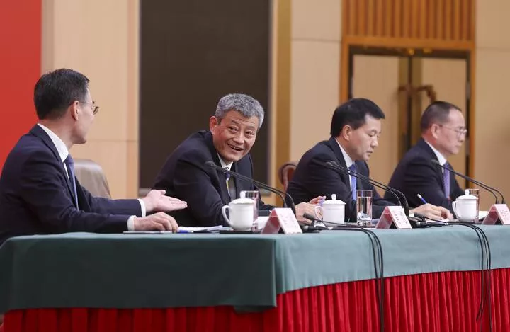 کمیونسٹ پارٹی آف چائنہ (سی پی سی) کے مرکزی کمیشن برائے نظم وضبط معائنہ کے نائب سربراہ اور قومی نگران کمیشن کے نائب سربراہ شیاؤپھی،سی پی سی کی مرکزی کمیٹی کے تنظیمی شعبے کے نائب سربراہ شوچھی فانگ اور سی پی سی مرکزی کمیٹی کے پالیسی ریسرچ آفس کے نائب سربراہ تیان پھیان دارالحکومت بیجنگ میں جاری سی پی سی کی 20ویں قومی کانگریس کے موقع پر پریس کانفرنس کرتے ہوئے۔(شِنہوا)