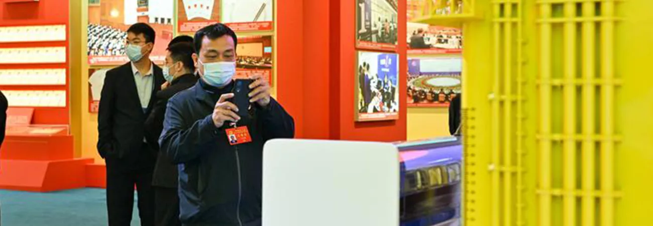 چین، کمیونسٹ پارٹی آف چائنہ کی 20 ویں قومی کانگریس کا ایک مندوب دارالحکومت بیجنگ کے بیجنگ نمائش مرکز میں " نئے دور کی سمت گامزن" کے موضوع پر منعقدہ نمائش کا دورہ کررہا ہے۔ (شِںہوا)