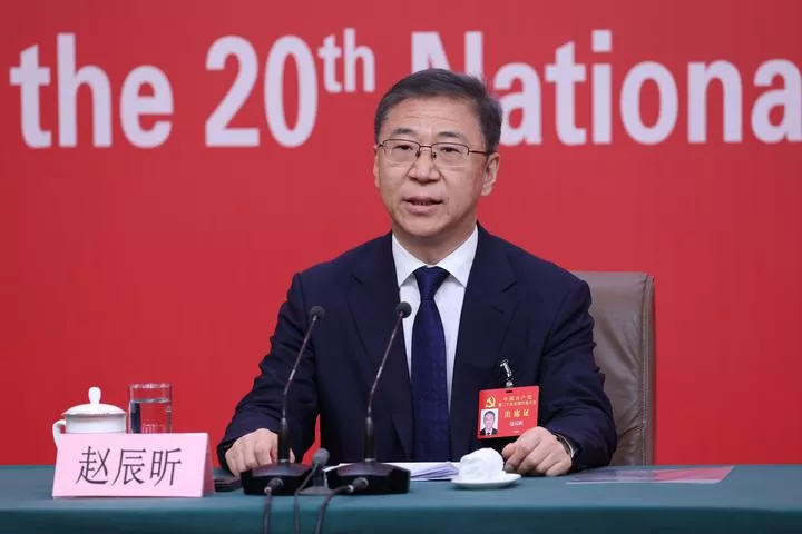 چین ، دارالحکومت بیجنگ میں جاری کمیونسٹ پارٹی آف چائنہ کی 20 ویں قومی کانگریس میں قومی ترقیاتی اور اصلاحات کمیشن کے ڈپٹی ڈائریکٹر ژاؤ چھن شین سائیڈ لائن پریس کانفرنس کررہے ہیں۔ (شِنہوا)