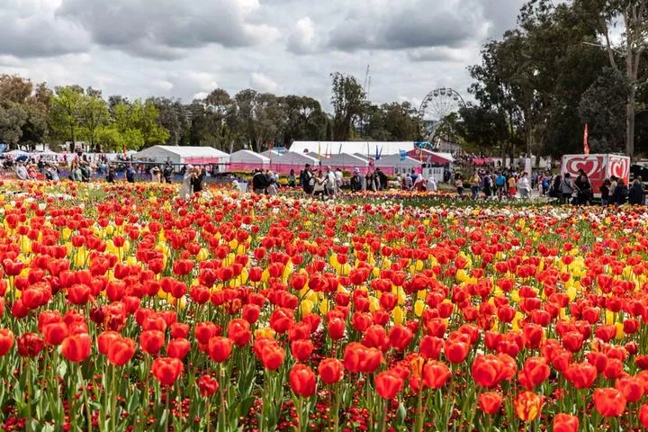 آسٹریلیا، کینبرا کے دولت مشترکہ پارک میں فلوریاڈ پھولوں کے میلے میں لوگ شریک ہیں۔ (شِنہوا)