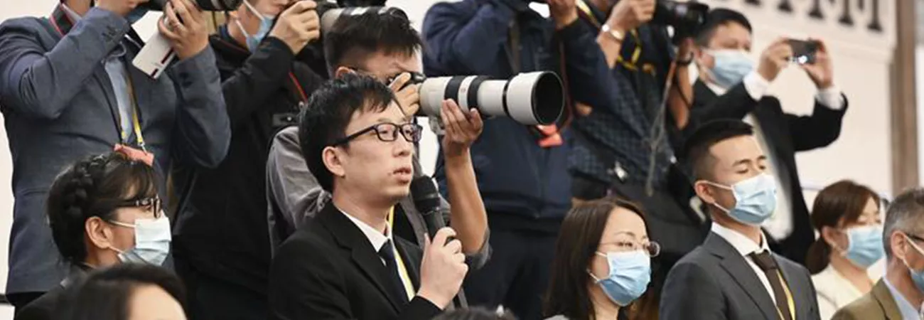 چین کے دارالحکومت بیجنگ کے عظیم عوامی ہال میں صحافی کمیونسٹ پارٹی آف چائنہ کی 20 قومی کانگریس کے مندوبین کے انٹرویو کررہے ہیں۔ (شِنہوا)