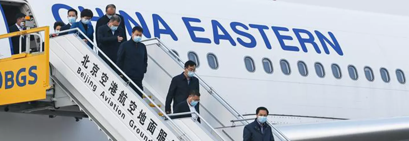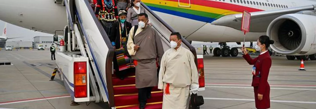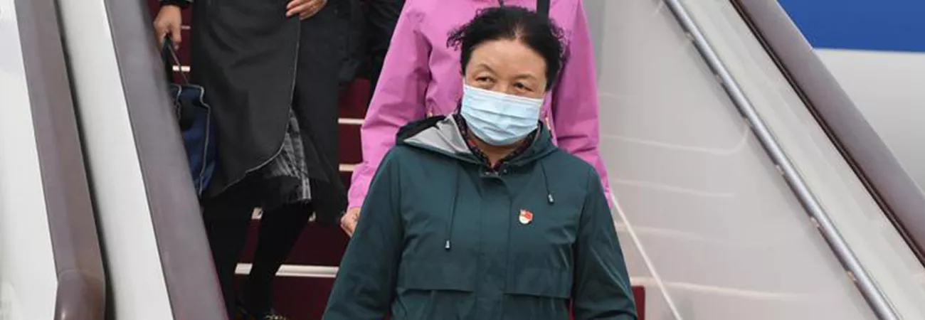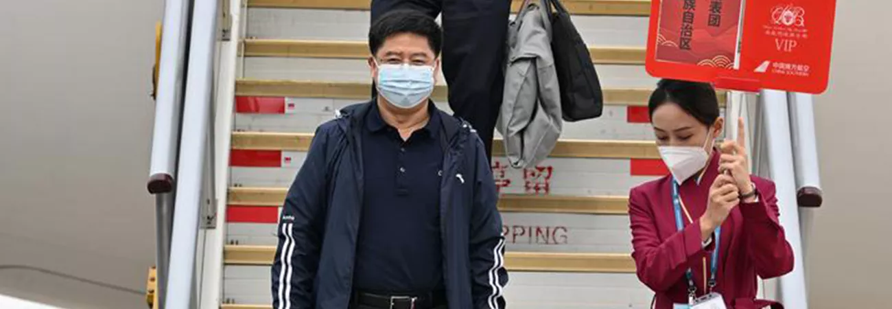کمیونسٹ پارٹی آف چائنہ (سی پی سی) کی 20ویں قومی کانگریس میں شرکت کے لیے خود اختیارعلاقے تبت سے آںے والے مندوبین دارالحکومت بیجنگ آمد پر جہازسے اترتے ہوئے۔(شِنہوا)