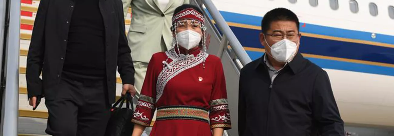 چین ، اندرونی منگولیا خود مختار خطے کے مندوبین کی کمیونسٹ پارٹی آف چائنہ(سی پی سی) کی 20 ویں قومی کانگریس میں شرکت کیلئے بیجنگ آمد کا ایک منظر۔(شِنہوا)