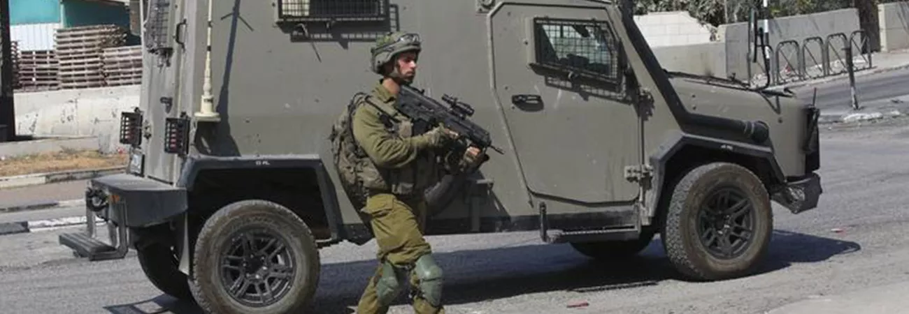 نابلس کے مغرب میں واقع آبادکاروں کی بستی شافی شمرون کے نزدیک ایک اسرائیلی فوجی گشت کر رہا ہے۔(شِنہوا)