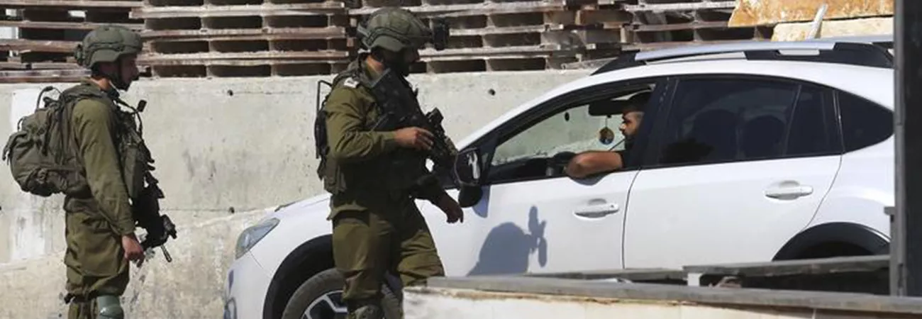 نابلس کے مغرب میں واقع آبادکاروں کی بستی شافی شمرون کے نزدیک اسرائیلی فوجی پہرہ دے رہے ہیں۔(شِنہوا)