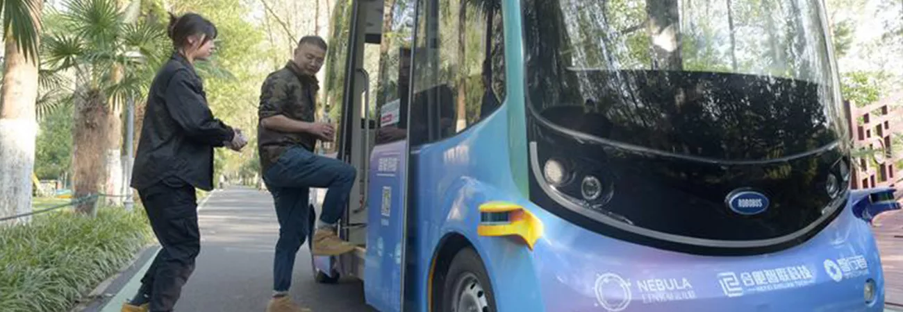 چین کے مشرقی صوبہ انہوئی کے شہر ہیفے کے بن ہو قومی جنگلات پارک میں سیاح خودکار بس میں سوار ہورہے ہیں۔ (شِںہوا)