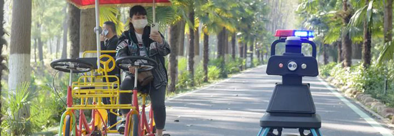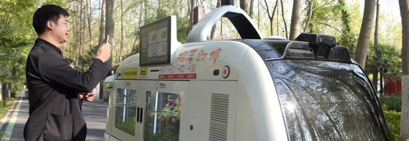 چین کے مشرقی صوبہ انہوئی کے شہر ہیفے کے بن ہو قومی جنگلات پارک میں بغیرانسان چلنے والی گاڑی صفائی کررہی ہے۔ (شِںہوا)
