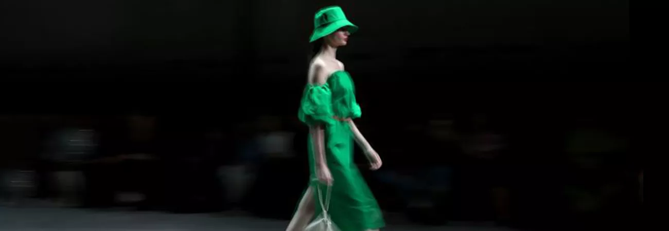 پرتگال ، لزبن میں منعقدہ لزبن فیشن ویک کے دوران ایک ماڈل ڈیزائنر نونو باتازر کے تیار کردہ ملبوسات کی نمائش کررہی ہے۔ (شِنہوا)