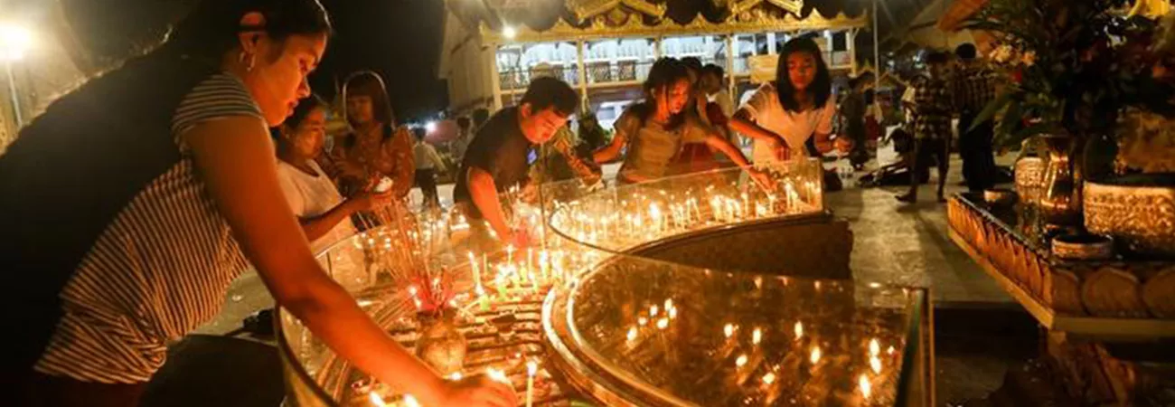 میانمار، ینگون میں تھادینگ یود تہوار میں مکمل چاند سے قبل لوگ شمعیں روشن کررہے ہیں۔ (شِںہوا)