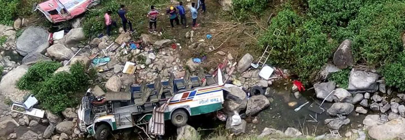 پولیس نے بتایا کہ حادثہ ضلع پوری گڑھ وال کے علاقے دھوماکوٹ کے قریب پیش آیا۔