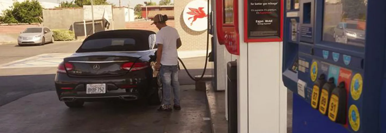 امریکہ ، کیلیفورنیا کی کاؤنٹی لاس اینجلس میں گیس اسٹیشن پر ایک شخص اپنی گاڑی میں ایندھن ڈال رہا ہے۔(شِنہوا)
