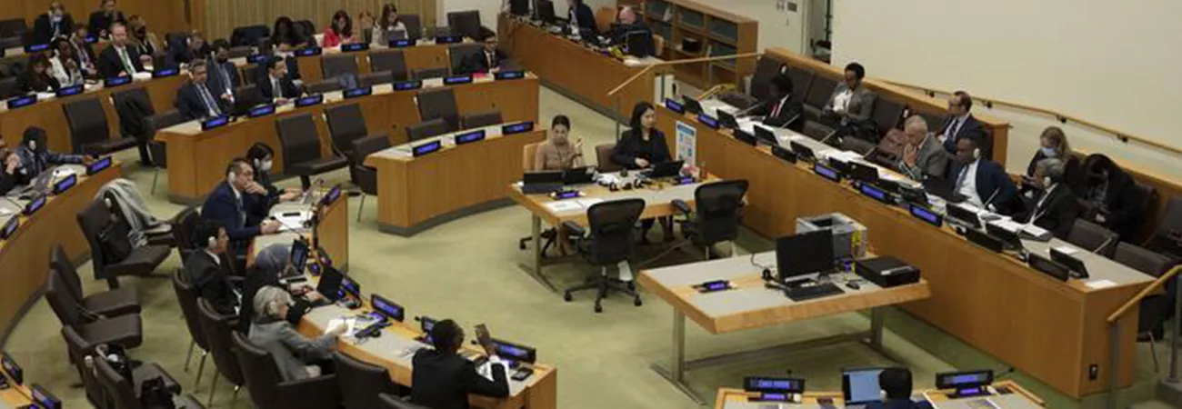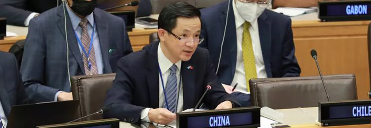 نیویارک ، اقوام متحدہ کے صدر دفتر میں 77 ویں جنرل اسمبلی کی پانچویں کمیٹی کے مرکزی اجلاس کے افتتاح پر اقوام متحدہ میں چین کے نائب مستقل مندوب دائی بنگ(سامنے) خطاب کر رہے ہیں۔(شِنہوا)