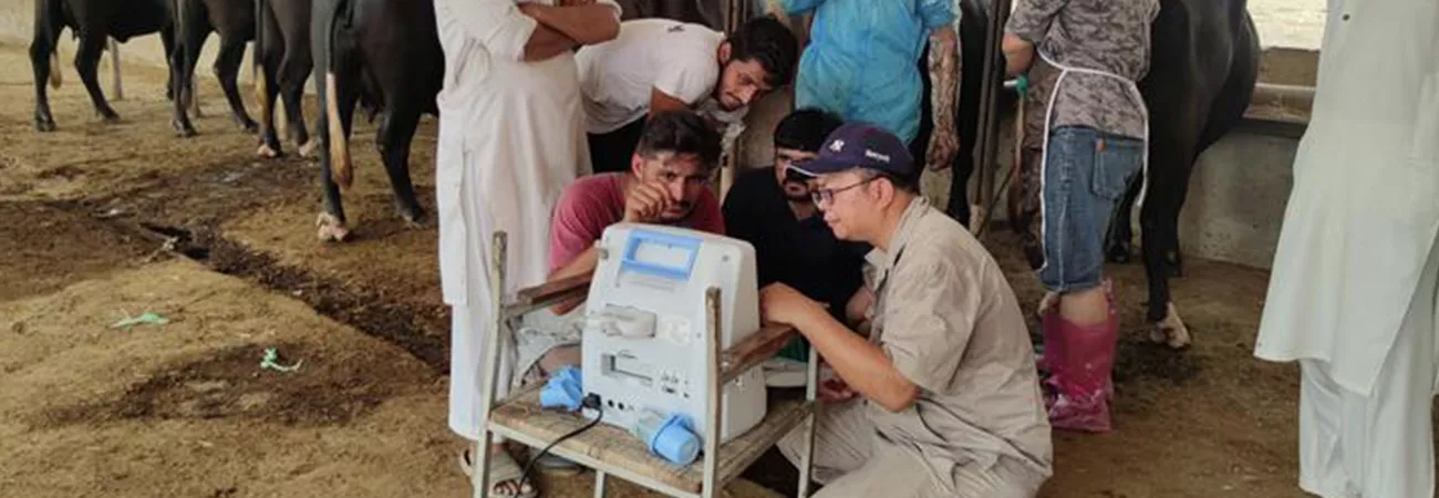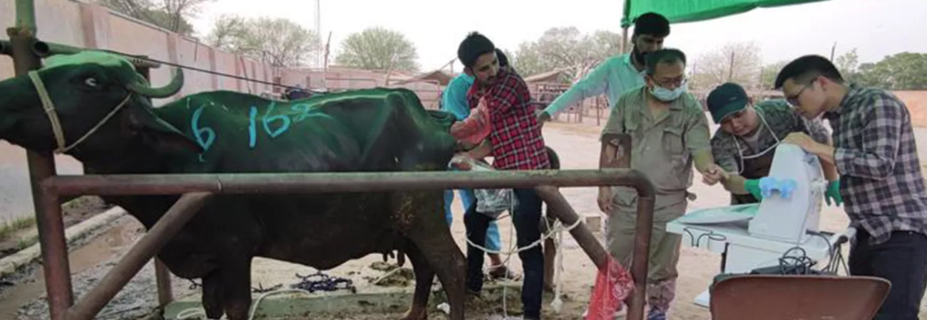رائل سیل بائیوٹیکنالوجی (گوانگ شی) لمیٹڈ کے ٹیکنیکل ماہرین پاکستانی محققین کو بھینس کے جنین منتقل کرنے بارے ہدایت دے رہے ہیں۔چین اور پاکستان نے بھینسوں کے متعلق تحقیقی تعاون کو مزید مضبوط کرلیا ہے۔ (شِنہوا)