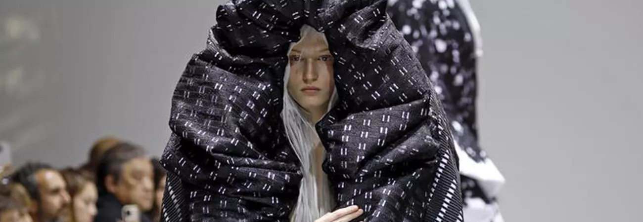 فرانس ، پیرس میں منعقدہ پیرس فیشن ویک کے دوران ایک ماڈل کومے ڈیس گارکون کے تیار کردہ بہار/گرما 2023 کے ملبوسات کی نمائش کررہی ہے۔ (شِنہوا)