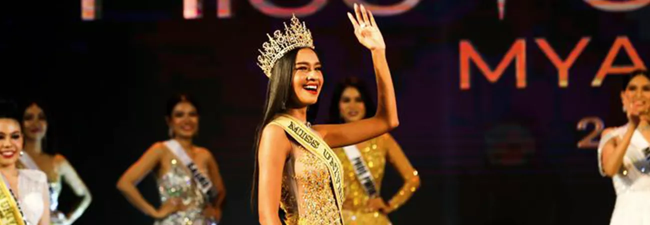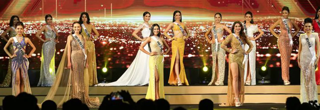 میانمار، ینگون میں منعقدہ مس یونیورس میانمار 2022 مقابلے میں حصہ لینے والی خواتین۔ (شِںہوا)