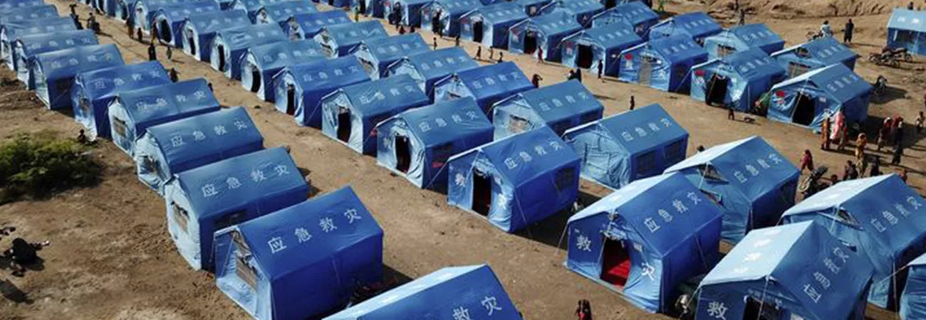 رواں سیزن کے دوران مون سون بارش سے پاکستان میں آنے والے شدید سیلاب اور اس کی تباہ کاریوں کے بعد چین فضائی راستے سے 13 ہزار خیمے پہلے ہی پہنچاچکا ہے۔ یہ خیمے اندرونی طور پر بے گھر افراد کی رہائش کے لئے زیراستعمال ہیں۔