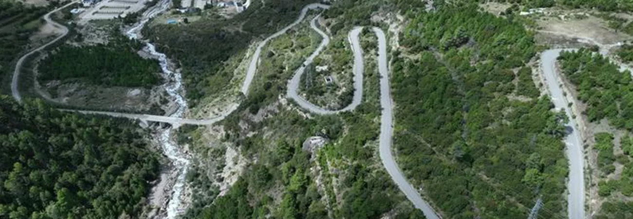 چین کے جنوب مغرب میں واقع تبت خوداختیار خطے کی می ڈوگ کاؤنٹی اور نی ینگ چی شہر کے پیڈ قصبے کی رابطہ شاہراہ کا فضائی منظر۔(شِںہوا)