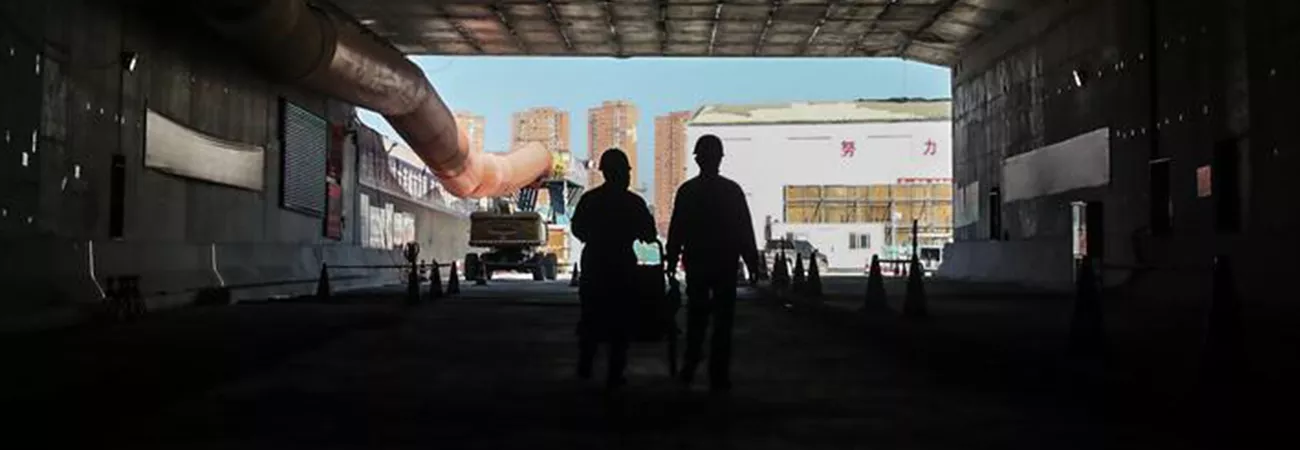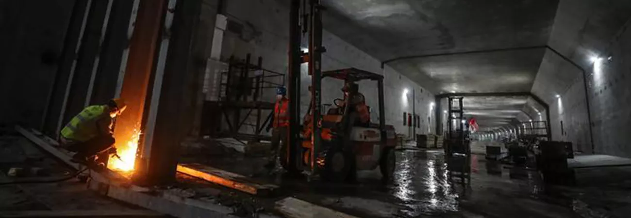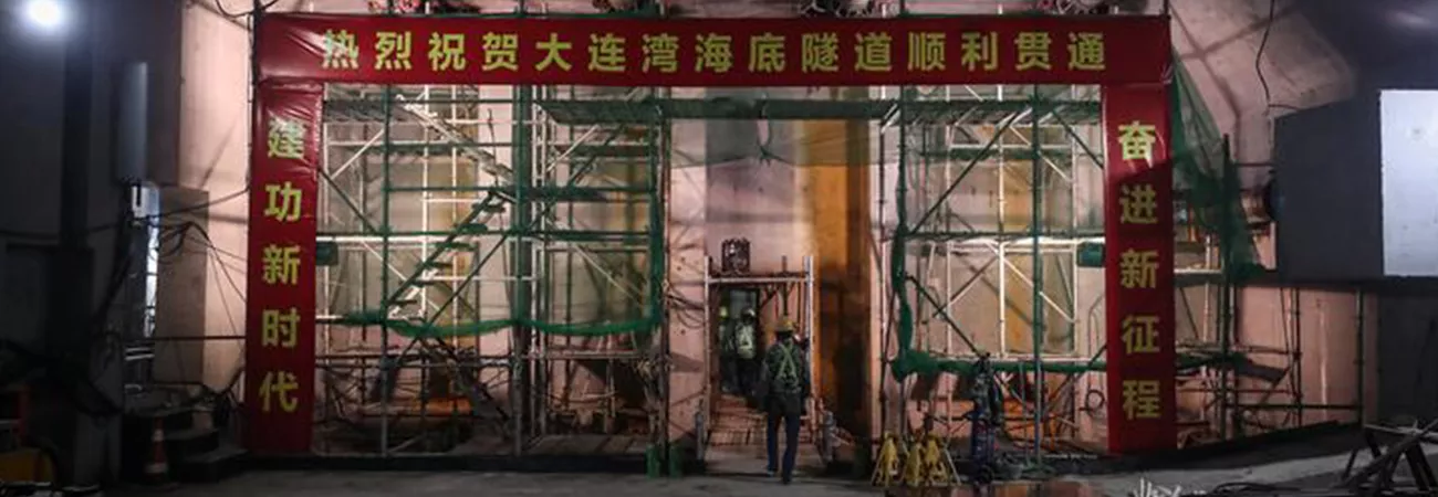 چین کے شمال مشرقی صوبہ لیاؤننگ کی خلیج ڈالیان میں زیرسمندر ایکسپریس وے سرنگ کی تعمیراتی سائٹ کا ایک منظر۔(شِنہوا)