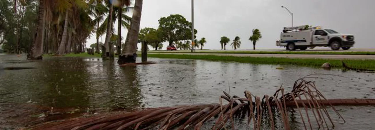 امریکہ میں فلوریڈا کے میامی میں سمندری طوفان سے قبل بارش کے باعث پانی کی سطح بلند ہونے کا ایک منظر۔ (شِنہوا)