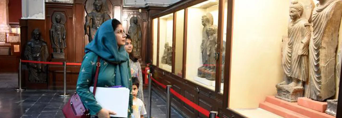 لاہور، عالمی یوم سیاحت پر لوگ عجائب گھر کا دورہ کررہے ہیں۔ (شِنہوا)