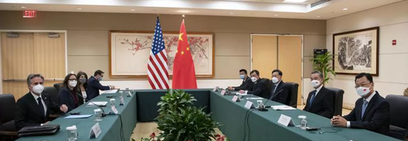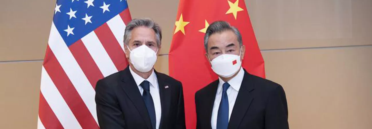 نیویارک میں اقوام متحدہ میں عوامی جمہوریہ چین کے مستقل مشن کے مقام پر چین کے ریاستی کونسلر اور وزیر خارجہ وانگ یی (دائیں) اور امریکی وزیرخارجہ انتھونی بلنکن ملاقات کر رہے ہیں۔(شِنہوا)