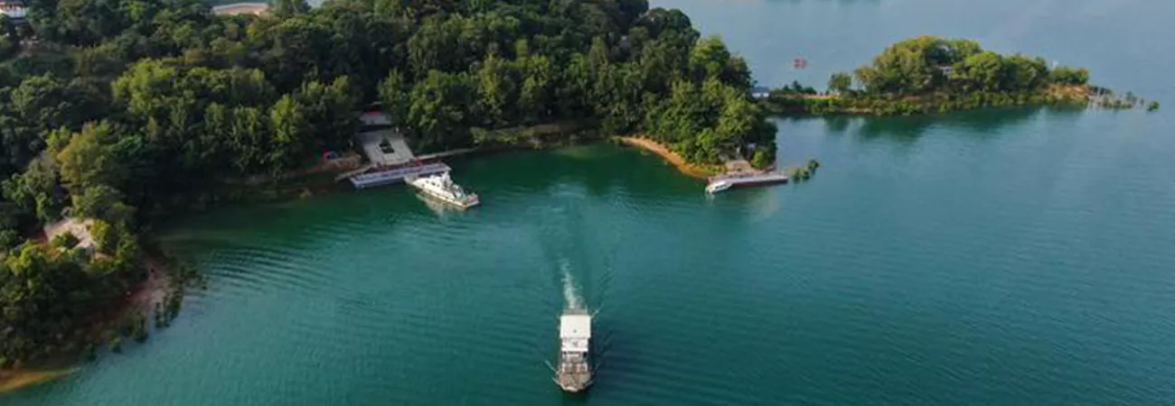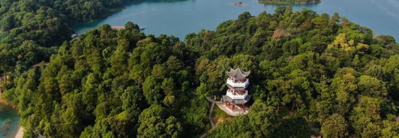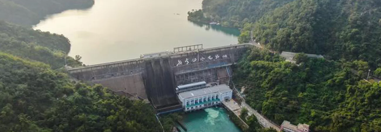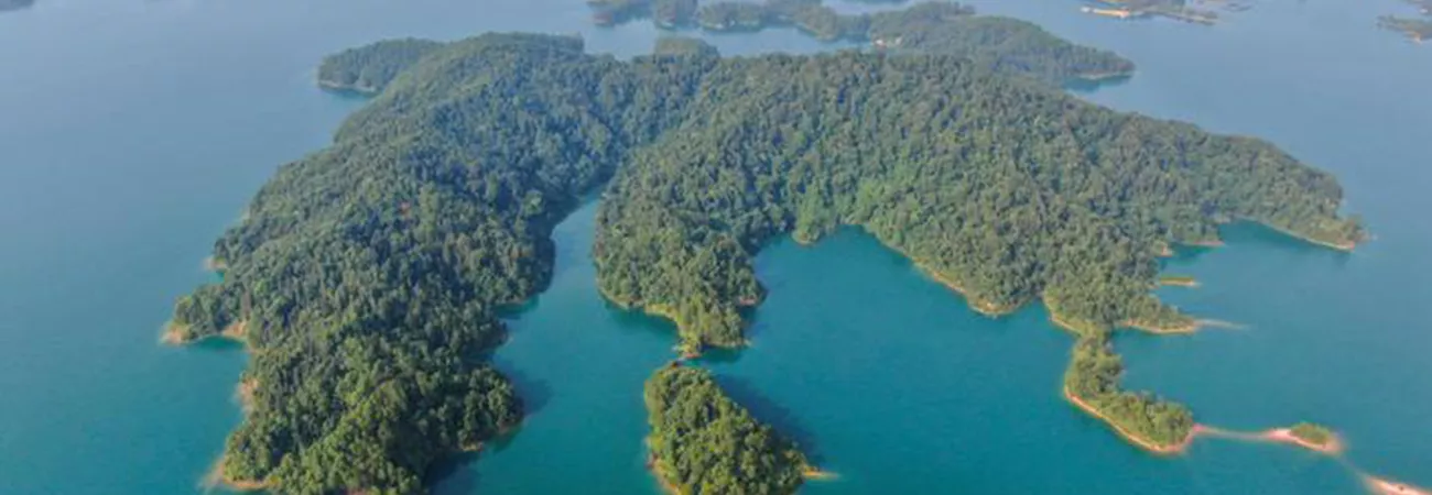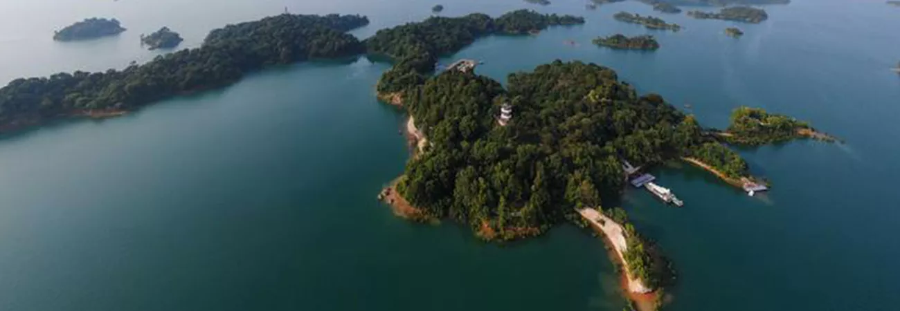 چین کے جنوبی صوبہ گوانگ ڈونگ کے ہی یوآن میں واقع وان لیو جھیل کا ایک فضائی نظارہ جو کہ شین فینگ جیانگ آبی ذخیرہ گاہ کے نام سے بھی مشہور ہے۔ (شِنہوا)
