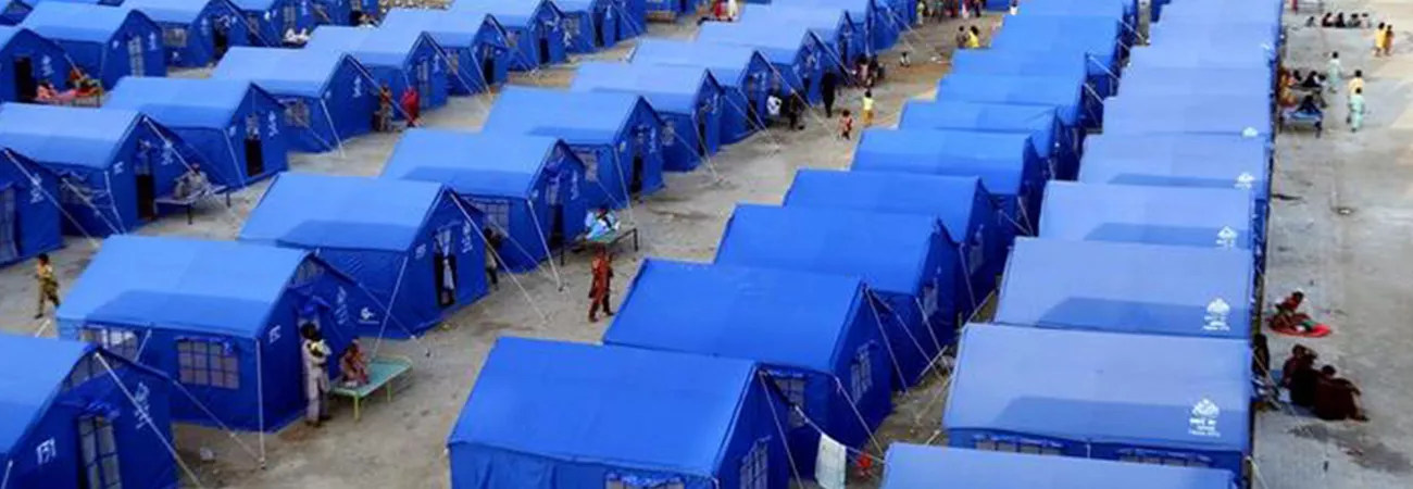 پشاور کے نواحی علاقے میں عارضی طور قائم ایک اسکول میں سیلاب سے متاثرہ بچے تعلیم حاصل کررہے ہیں۔ (شِنہوا)