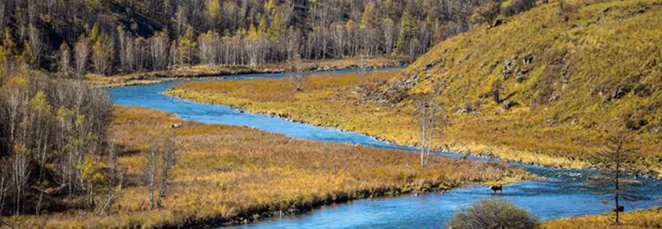 چین کے شمالی اندرون منگولیا خوداختیار خطے میں ہنگ گان لیگ کے آرشان میں واقع آرشان قومی جنگلات پارک میں دریا کا ایک دلکش منظر۔ (شِنہوا)