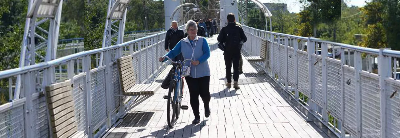 یوکرائن کے ایزیوم میں شہری ایک اوور پاس سے گزر رہے ہیں۔(شِنہوا)